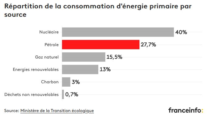 Si la production d’électricité française est effectivement peu carbonée grâce au nucléaire et à l’hydraulique, notre mix énergétique global, lui, ne l’est pas du tout. En France, 60 % de l’énergie que nous consommons provient encore des énergies fossiles, dont 43 % du pétrole et du gaz.