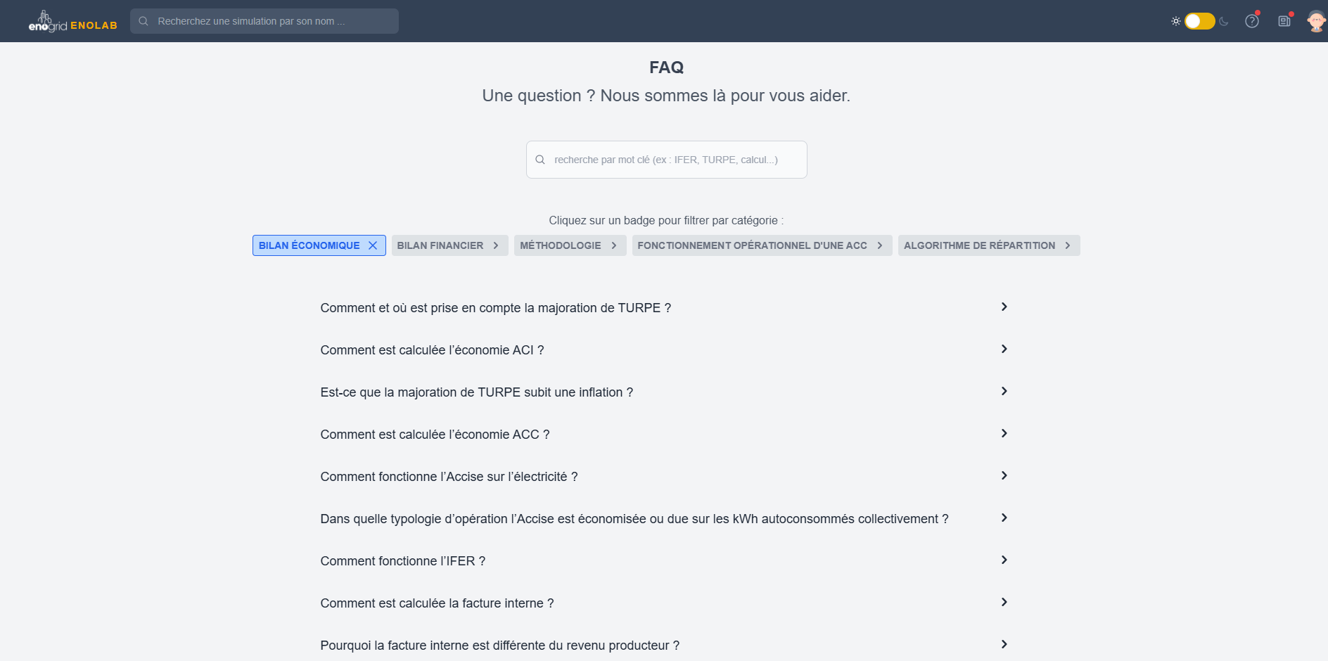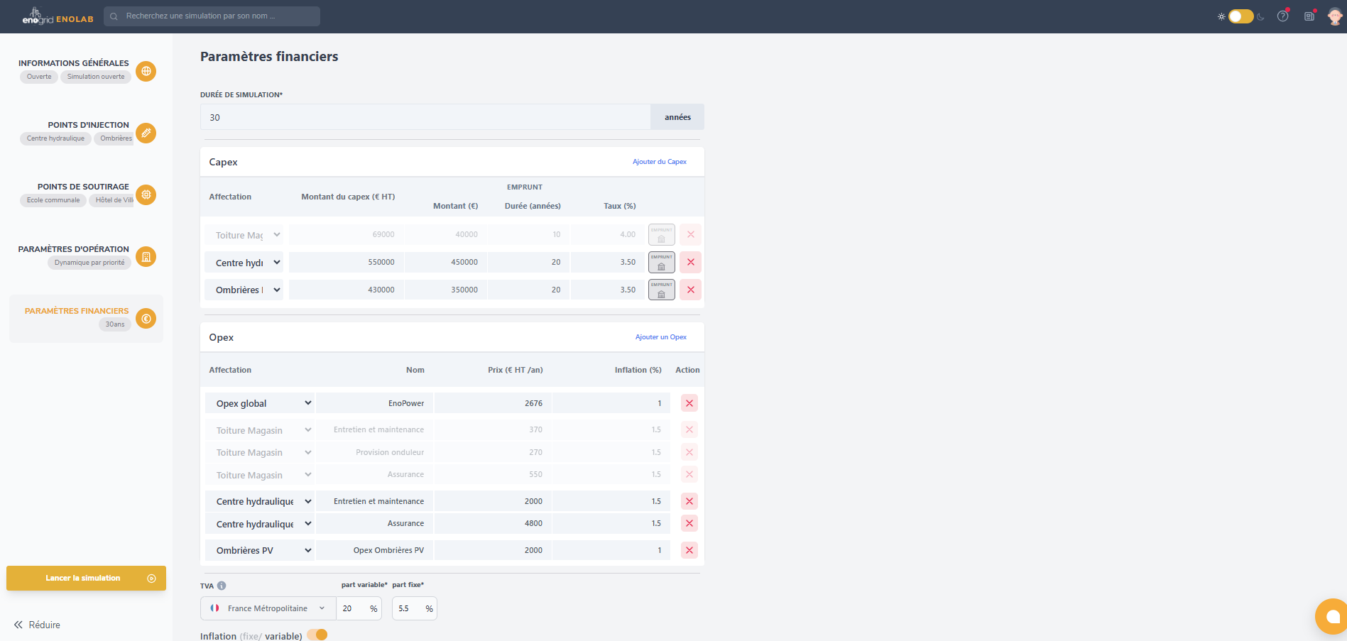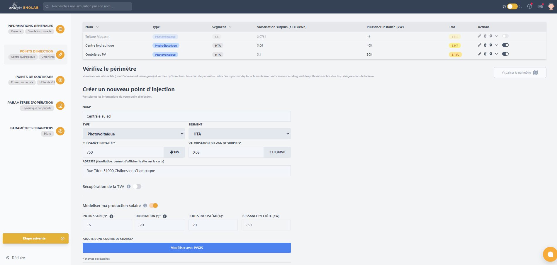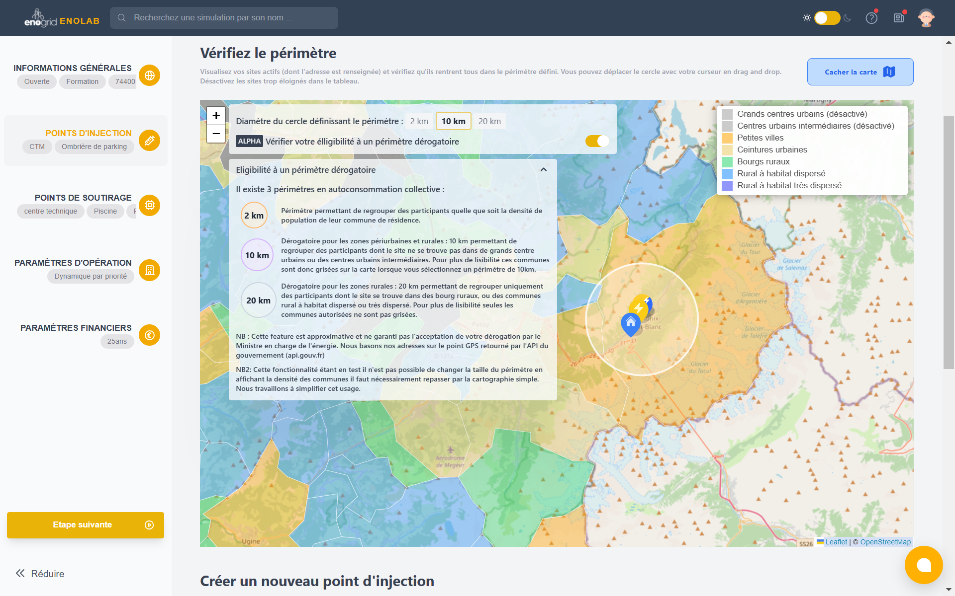 EnoLab vous permet également d’être toujours à jour vis-à-vis de la législation de l’autoconsommation collective : niveau de TURPE ou de taxation, montages réglementaires, liens contractuels, les équipes d’Enogrid maintiennent et améliorent EnoLab continuellement pour que vous puissiez étudier vos projets de façon réaliste et détaillée !