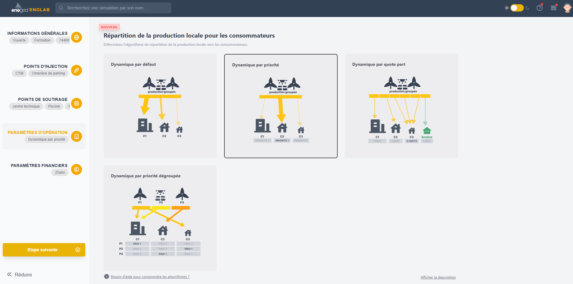 EnoLab est un outil de simulation destiné à rendre autonomes les professionnels de l’énergie souhaitant étudier des projets d’autoconsommation collective.